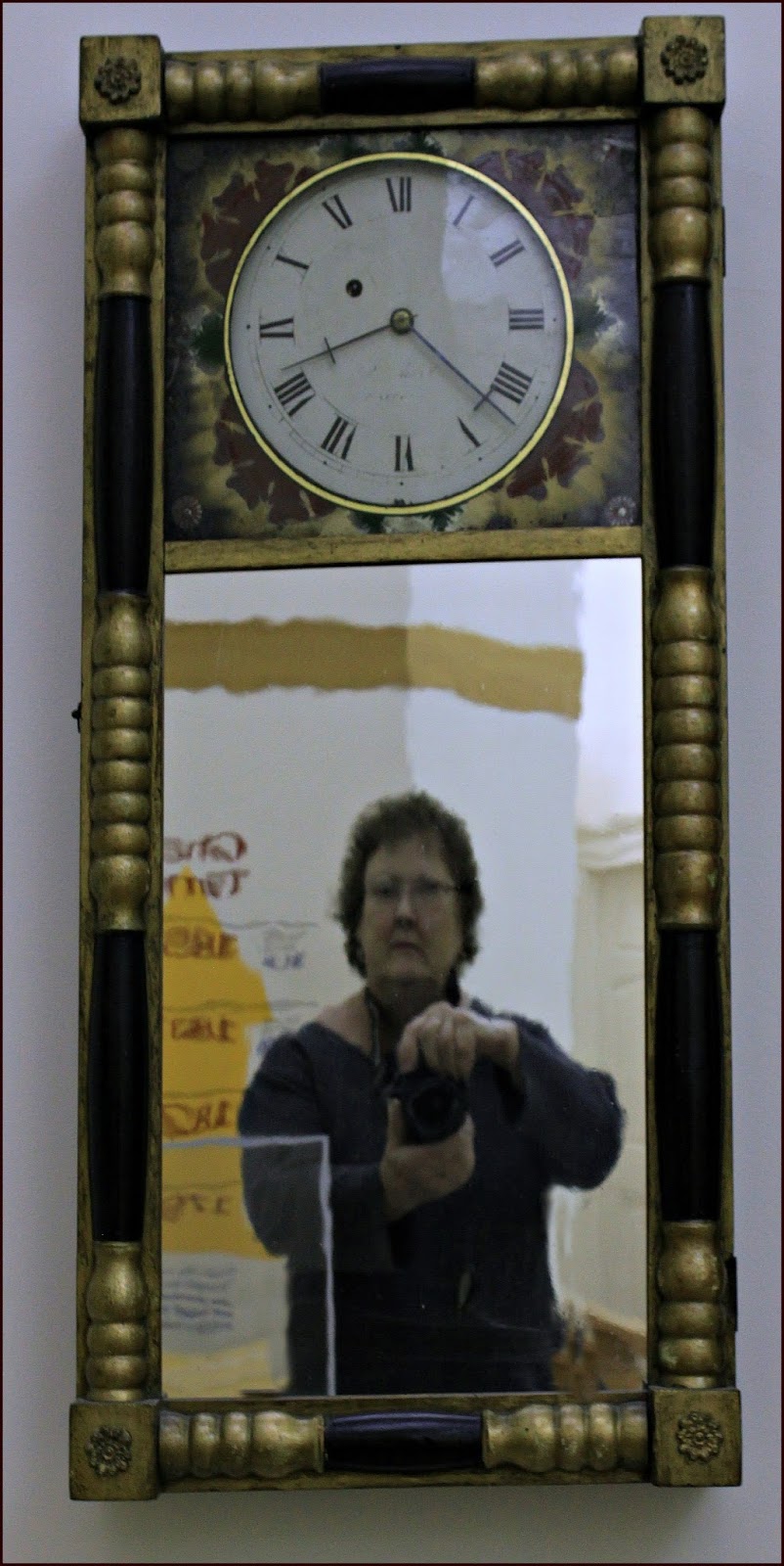 This clock had the convenience of a clock on top and a mirror below. Note the selfie below....the glass is a bit distorted :-)